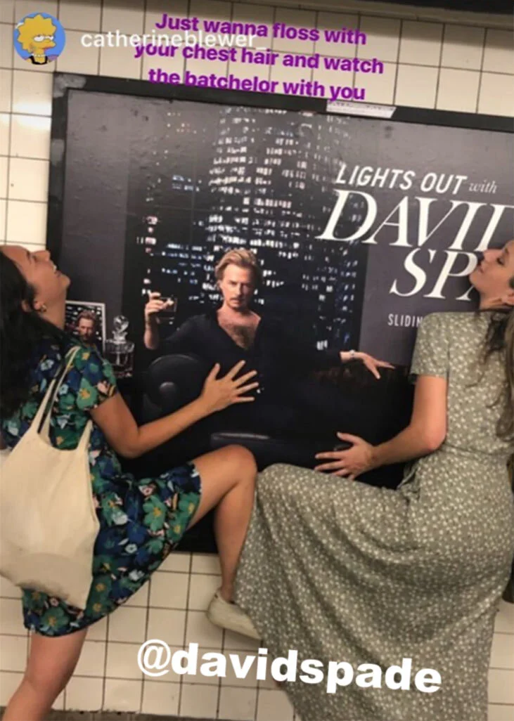 Our entire campaign was built to celebrate Spade and to help carve out the show’s unique place in late night: one that’s finally politics-free. Playing off the many overly produced celebrity Instagram ads (see: Kourtney Kardashian’s Poosh), we shot David being ever so “candid” in his living room. The dog happened to be on set, so we figured, why not? Fun fact: We did the deepest exploration of chest hair in the history of this department. Thick? Brown? Bushy? Blond? Needless to say, we are now serious chest hair experts.